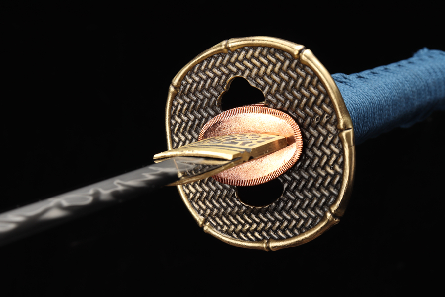 Cán kiếm bọc da cá đuối thật + giấy hoa văn lưới, tăng độ bám và tính thẩm mỹ