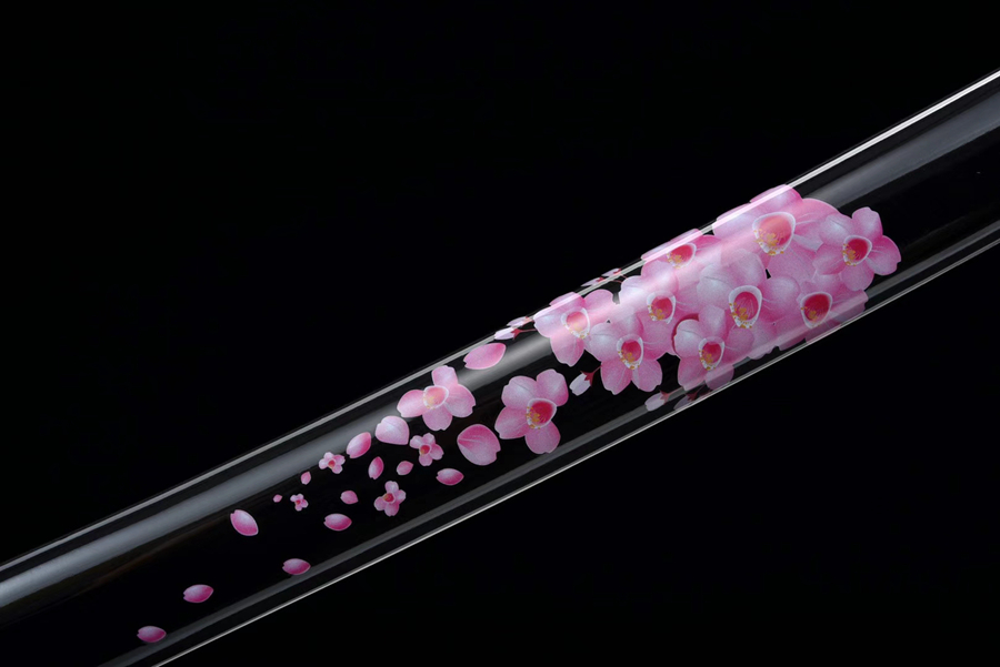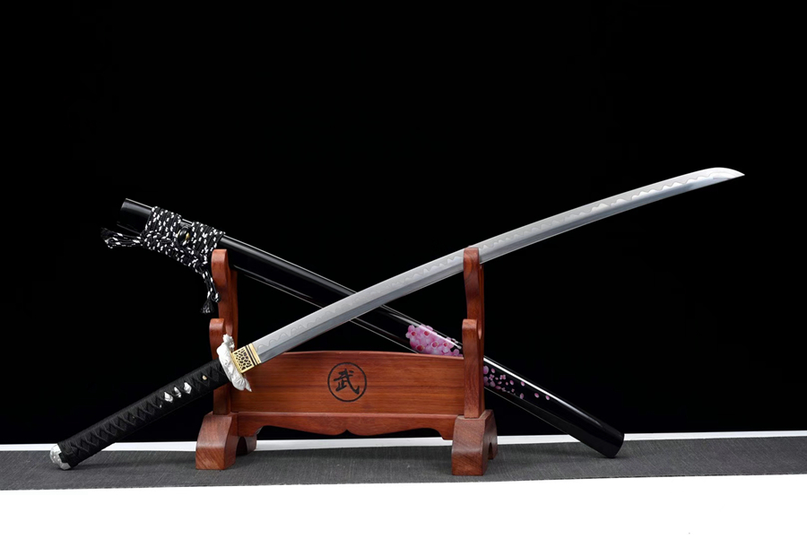 Vỏ kiếm: gỗ tự nhiên phủ sơn mài với hoa văn hoa anh đào tinh tế.