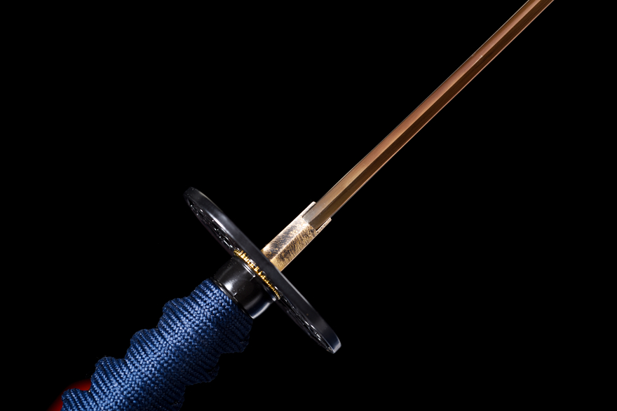 Lưỡi kiếm: Thép carbon trung cấp, xử lý công nghệ mạ vàng, mang lại vẻ đẹp ấn tượng và sự sắc bén tuyệt vời.