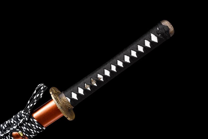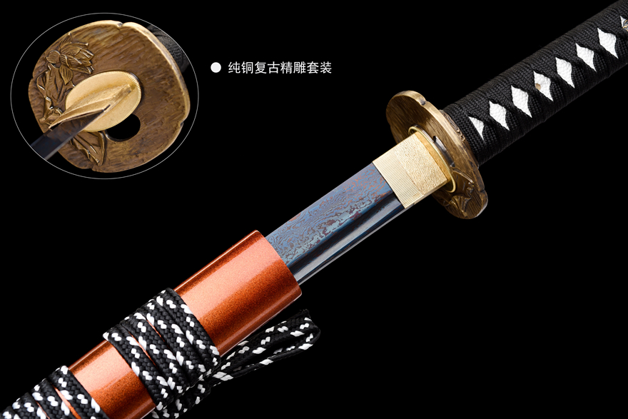 Phụ kiện (Tsuba, Fuchi, Kashira...): Bằng đồng nguyên chất, chạm khắc hoa văn cổ phong, tỉ mỉ và tinh tế.