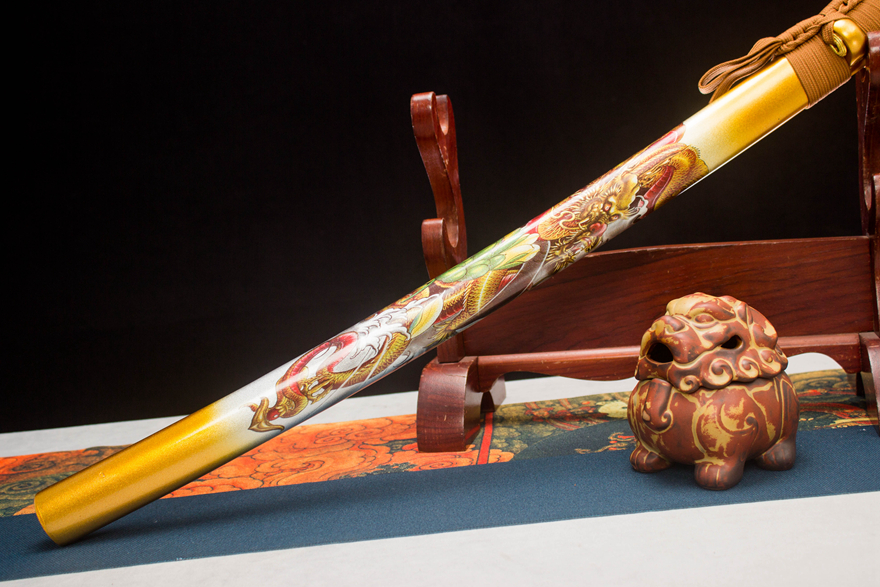 Vỏ kiếm: Gỗ thật sơn mài, bảo vệ lưỡi kiếm an toàn và tạo điểm nhấn thẩm mỹ cho sản phẩm.