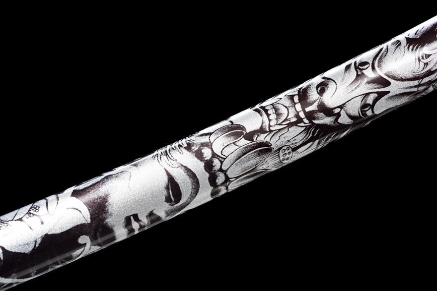 Chất liệu lưỡi: Thép cao cấp được rèn thủ công qua 18 công đoạn mài giũa tỉ mỉ, kết hợp với việc mở các máu kiếm lớn nhỏ và xử lý bề mặt bằng phương pháp phun đen cổ điển, giúp lưỡi kiếm vừa sắc bén vừa bền bỉ.
