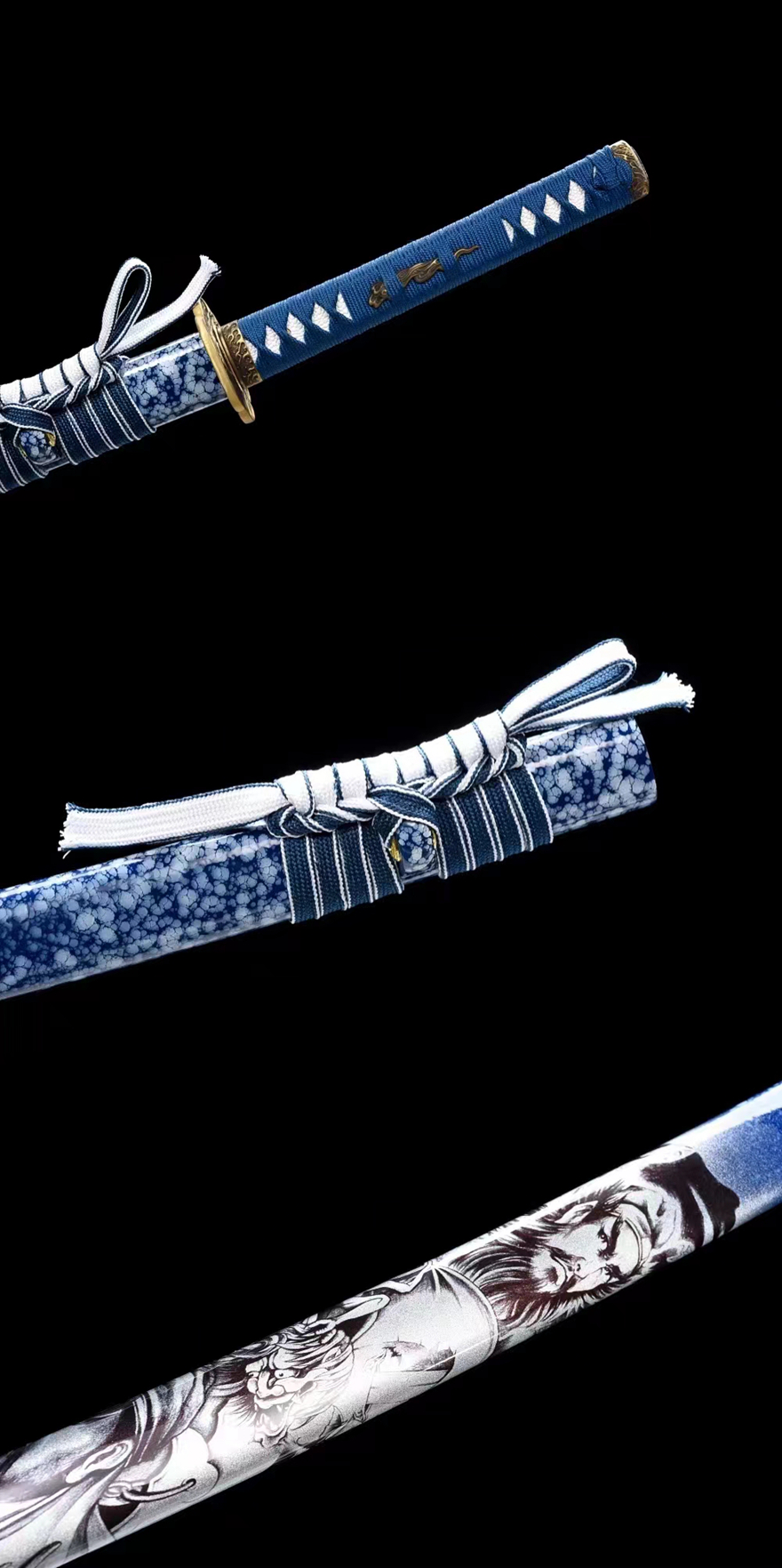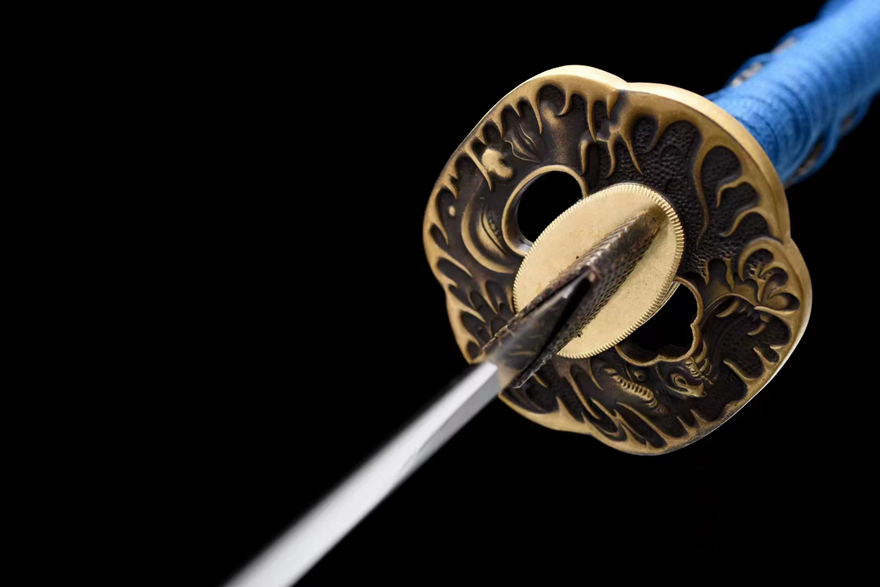 Chất liệu lưỡi: Được chế tạo từ thép T10 cao cấp, sử dụng kỹ thuật tôi phủ đất sét truyền thống (覆土烧刃) để tăng độ cứng phần lưỡi và giữ độ dẻo thân kiếm.