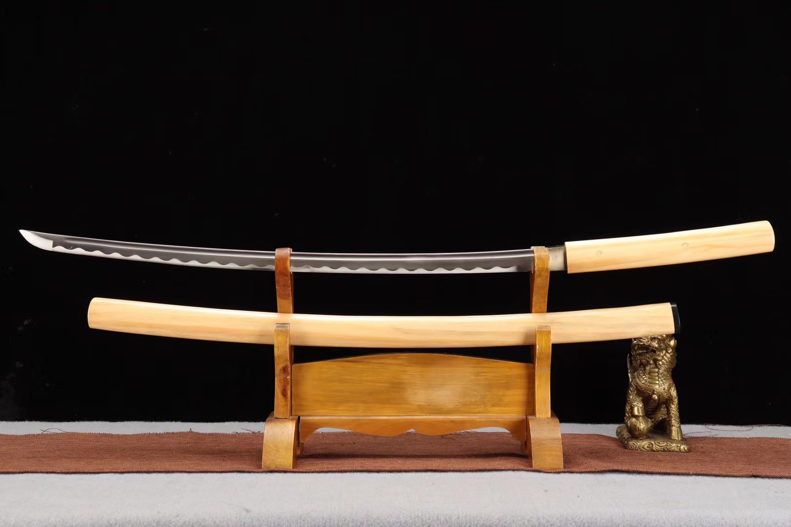Lưỡi kiếm làm từ thép 45#, được tôi luyện và rèn thủ công với quy trình truyền thống của kiếm Nhật