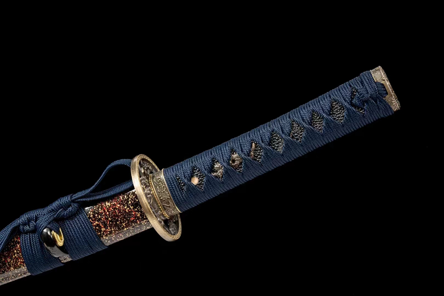 Thiết Kế Tinh Tế: Vỏ kiếm bằng gỗ tự nhiên phủ sơn mài, kết hợp với tay cầm quấn chắc chắn, mang đến sự chắc chắn và dễ dàng khi sử dụng.
