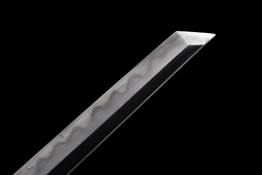 Thép hoa văn tự luyện kết hợp lõi thép T10, rèn theo phương pháp kẹp thép cổ truyền (夹钢) – giữ độ cứng và độ đàn hồi tuyệt vời