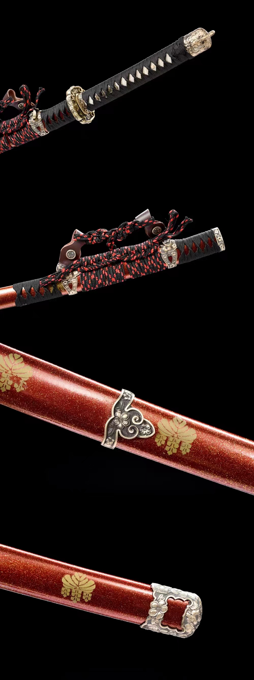Vỏ kiếm làm từ gỗ thật, phủ sơn đỏ vảy vàng thủ công cao cấp
