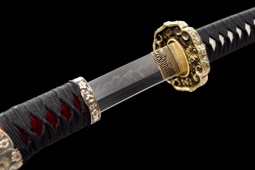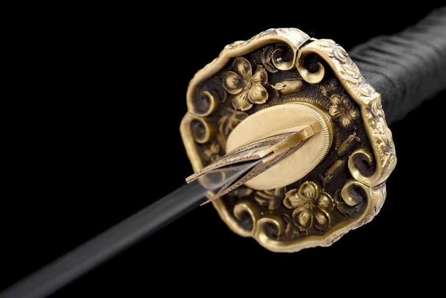 Bộ phụ kiện đi kèm: Tsuba và fittings từ đồng nguyên khối, chạm khắc họa tiết hoa anh đào – phong cách truyền thống Nhật