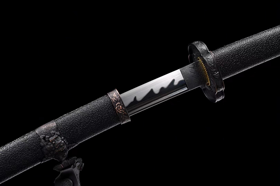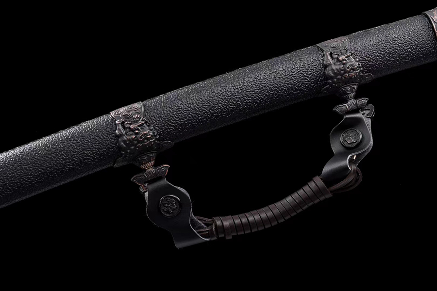Công nghệ xử lý: Lưỡi được xử lý theo phương pháp cổ truyền, phủ màu đen trên thân kiếm, tạo vẻ cổ điển và chống rỉ sét hiệu quả.