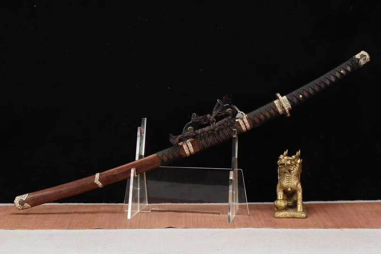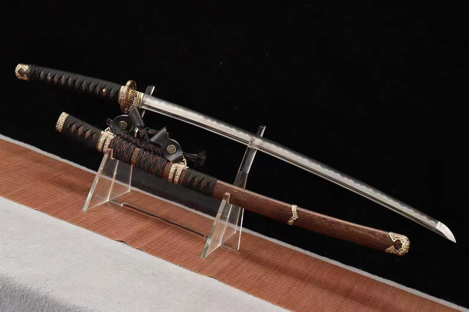 Kiếm Nhật Tachi Nhất Di Hạc – 26 Inch T10 Rèn Tay, Lưỡi Trắng Tôi Đất, Chuôi Đồng Mạ Vàng, Vỏ Gỗ Hoa Lê Cao Cấp