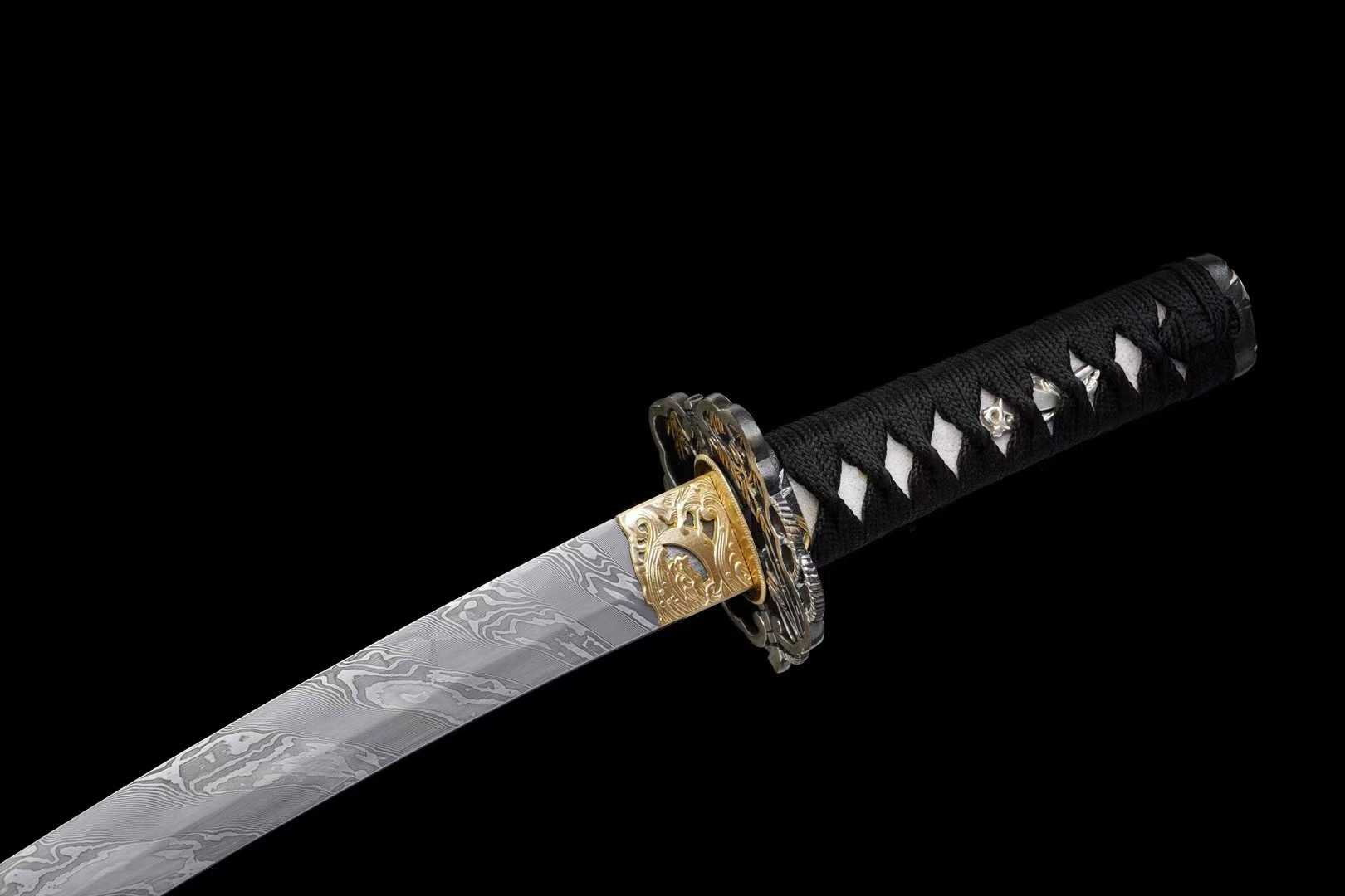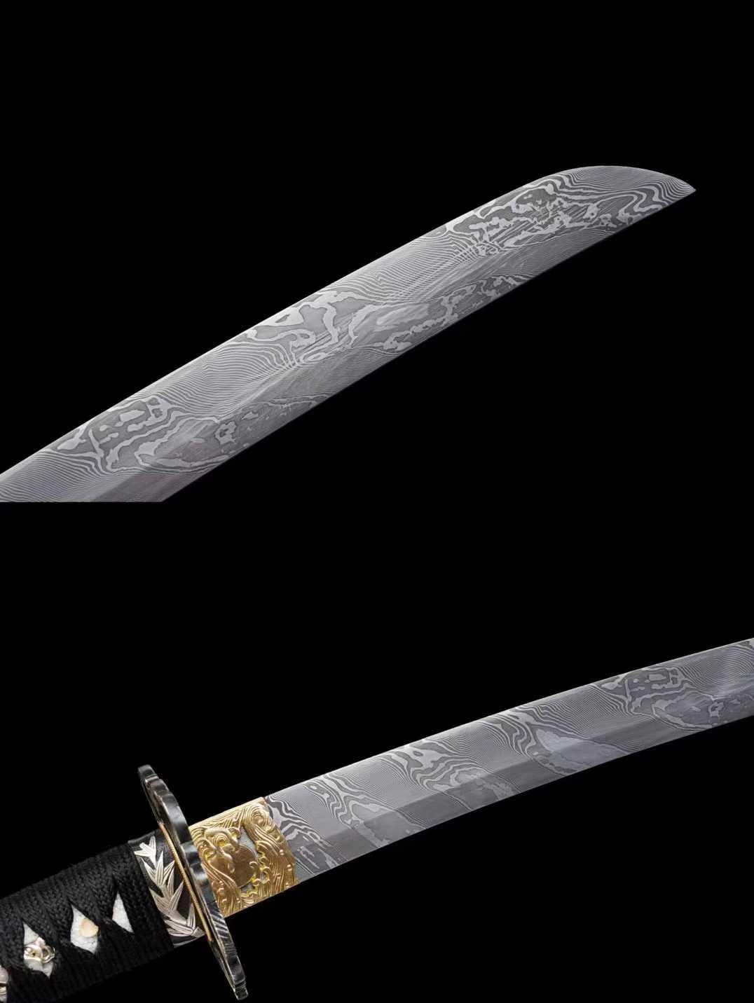 Làm từ thép hoa văn gập xoắn, rèn thủ công nhiều lớp qua hàng nghìn lần锤打 (rèn búa), đạt độ cứng 60°