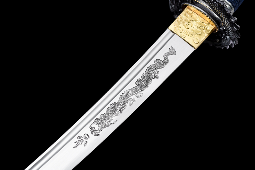 Lưỡi dao làm từ thép 50# rèn dập, có họa tiết khắc chống ăn mòn tinh tế