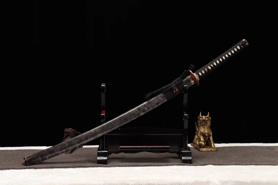 Kiếm Nhật Thủ Công Rèn Lửa – Mẫu "Vĩnh Lạc" Bọc Da Cá Thật Cao Cấp