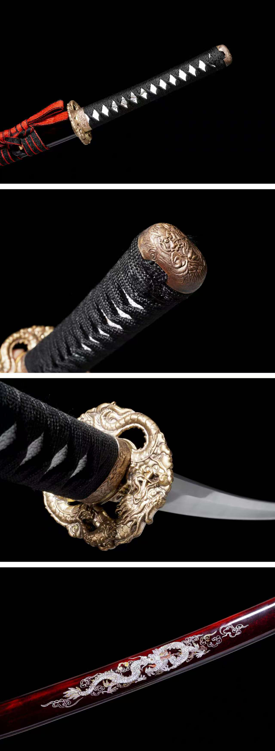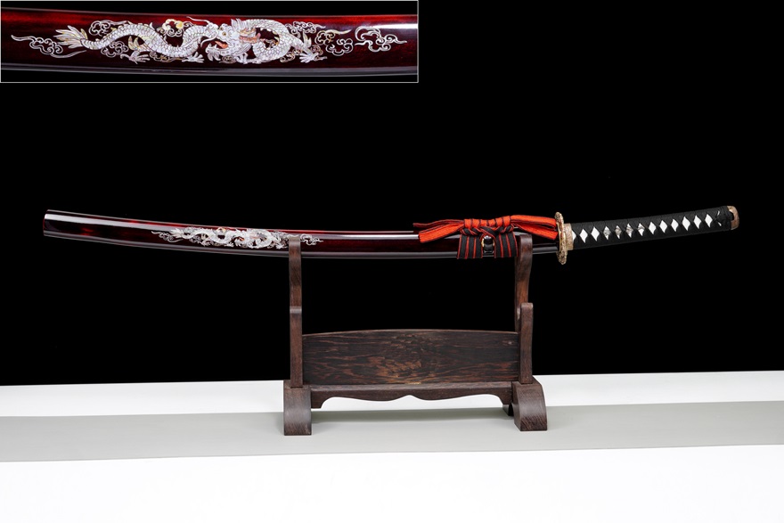 Vỏ kiếm: Làm từ gỗ cứng tự nhiên loại cao cấp, phủ lớp sơn mài bền đẹp.