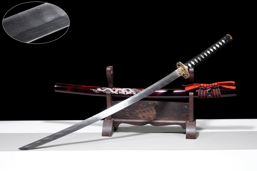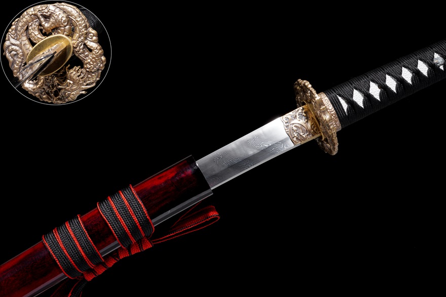 Kiếm Nhật “Tĩnh Nguyệt Long Ngâm” – Thép Hoa Văn Xoắn, Phụ Kiện Đồng Khắc Giả Cổ