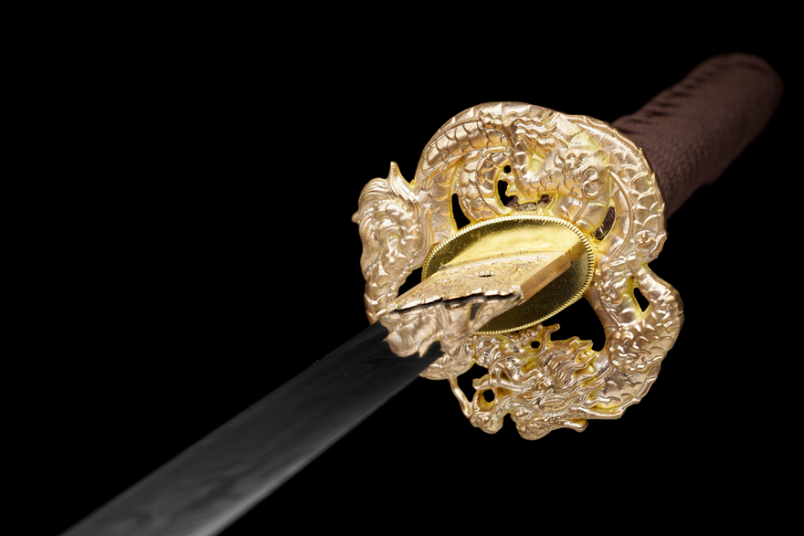 Kiếm Nhật Tử Thanh Thần Long – Thép Hoa Văn Xoắn Damas, Đồng Nguyên Chất Khắc Rồng