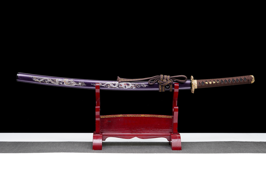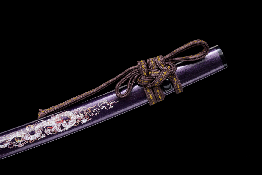 Vỏ kiếm: Gỗ thật phủ sơn mài khảm hình rồng, phối dây đeo thô kiểu Nhật bản to.