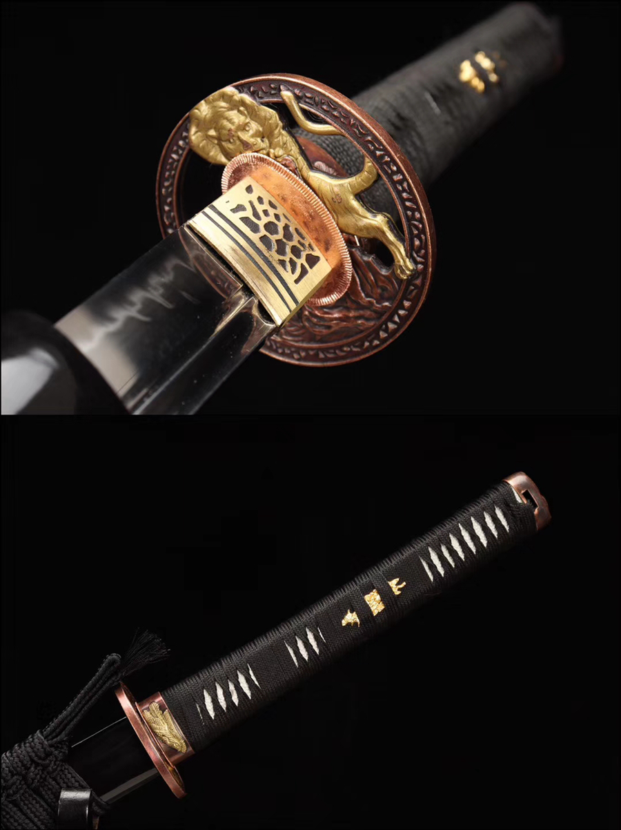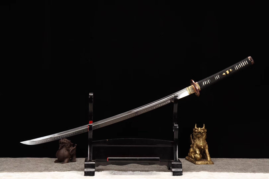 Thép T10 công cụ cao cấp, được rèn thủ công toàn thân (一体锻打) – từ lưỡi đến sống kiếm đều liền khối.