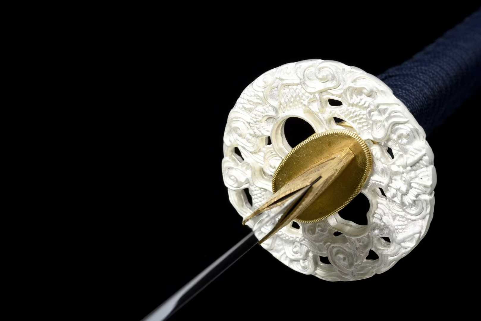 Kiếm có thể uốn cong 90° rồi trở lại thẳng hoàn toàn, chứng minh chất lượng rèn và xử lý nhiệt vượt trội.