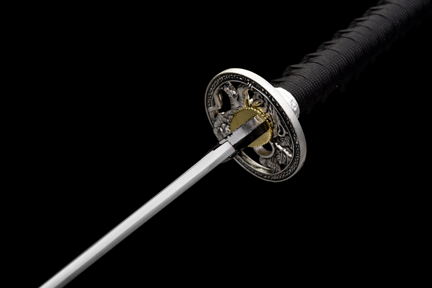 Lưỡi kiếm bằng thép trung carbon, sắc bén vừa đủ để luyện tập, chém giấy, rơm, thân chuối, hoặc dùng trưng bày.