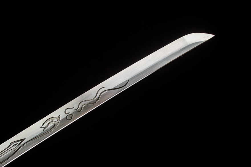Lưỡi kiếm: Thép mangan cao cấp, chế tác thủ công theo phương pháp truyền thống của Long Sơn, đảm bảo độ sắc bén và bền bỉ lâu dài. Lưỡi kiếm có độ cứng cao, dễ dàng chịu được va đập và mài mòn.