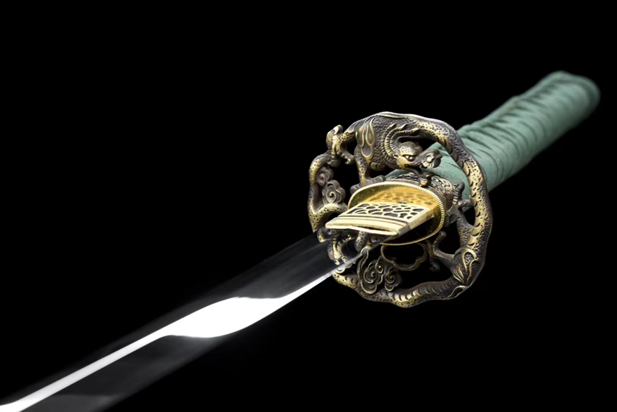 Kiếm Samurai Katana Thép Gương Sáng “Sakura Hime” | Thép Lưỡi Cứng, Đồng Chạm Khắc Tinh Xảo
