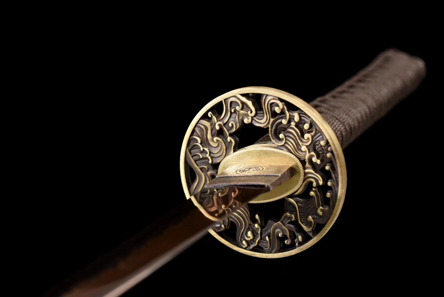 Chất liệu lưỡi: Lưỡi kiếm được chế tác từ thép T10 cao cấp, trải qua quy trình phủ đất và nung đen cổ truyền giúp tăng độ bền và chống gỉ hiệu quả.