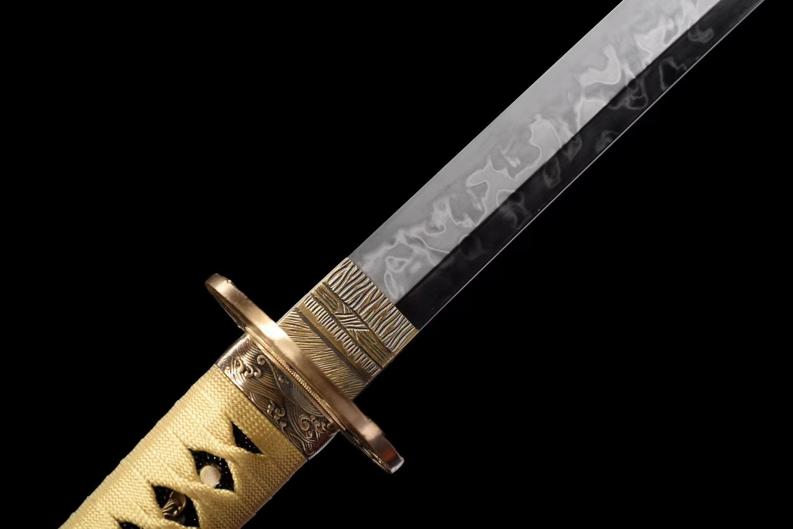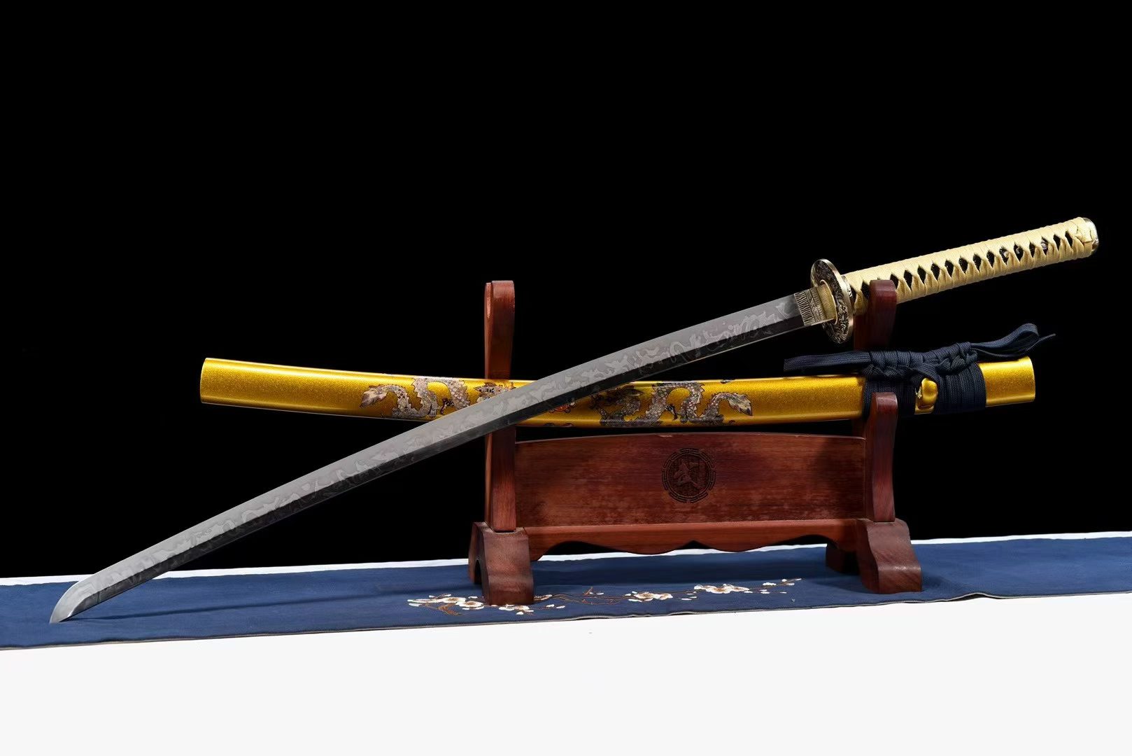 - Lưỡi kiếm: Thép T10 tôi lưỡi toàn phần, hamon độc bản