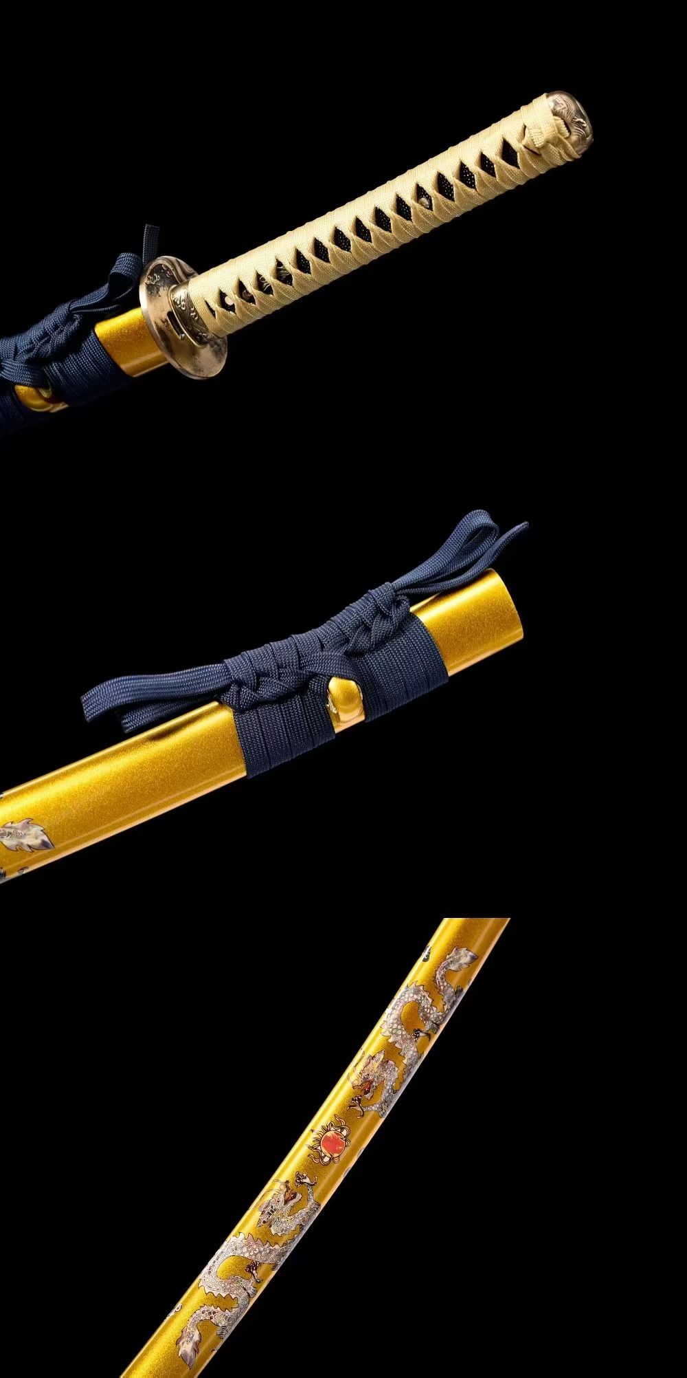 - Vỏ kiếm (Saya): Gỗ tự nhiên sơn mài cao cấp, đi kèm dây treo thô bản lớn