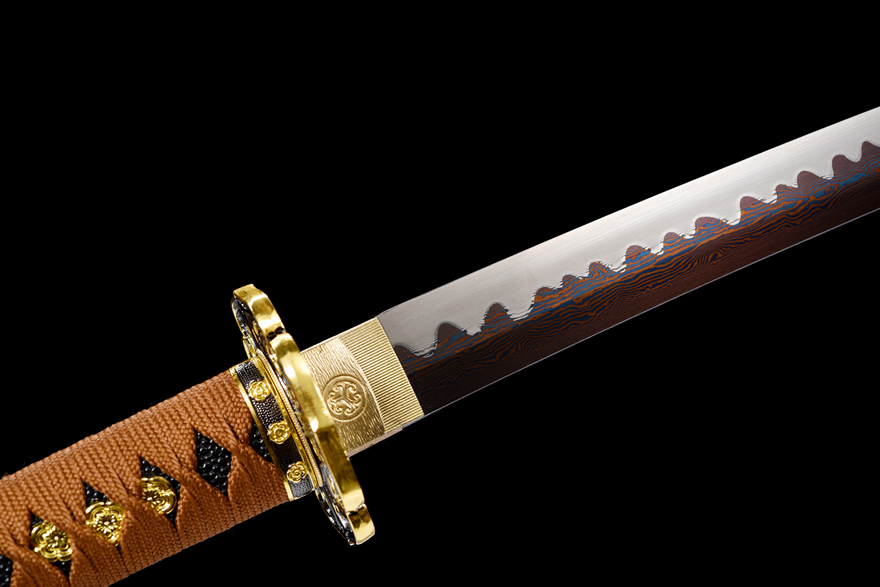 Kiếm samurai được chế tác từ thép hoa văn luyện nhiều lần (百炼钢), trải qua kỹ thuật rèn đập tinh xảo. Lưỡi kiếm xử lý theo công nghệ nướng xanh (烤蓝工艺) giúp tăng độ bền và chống gỉ hiệu quả. Đặc biệt, phần lưỡi được mài tay thủ công theo kỹ thuật đẩy mài trắng với đường đôi (推磨研白双线), tạo nên vẻ sắc nét và bền chắc tối ưu.
