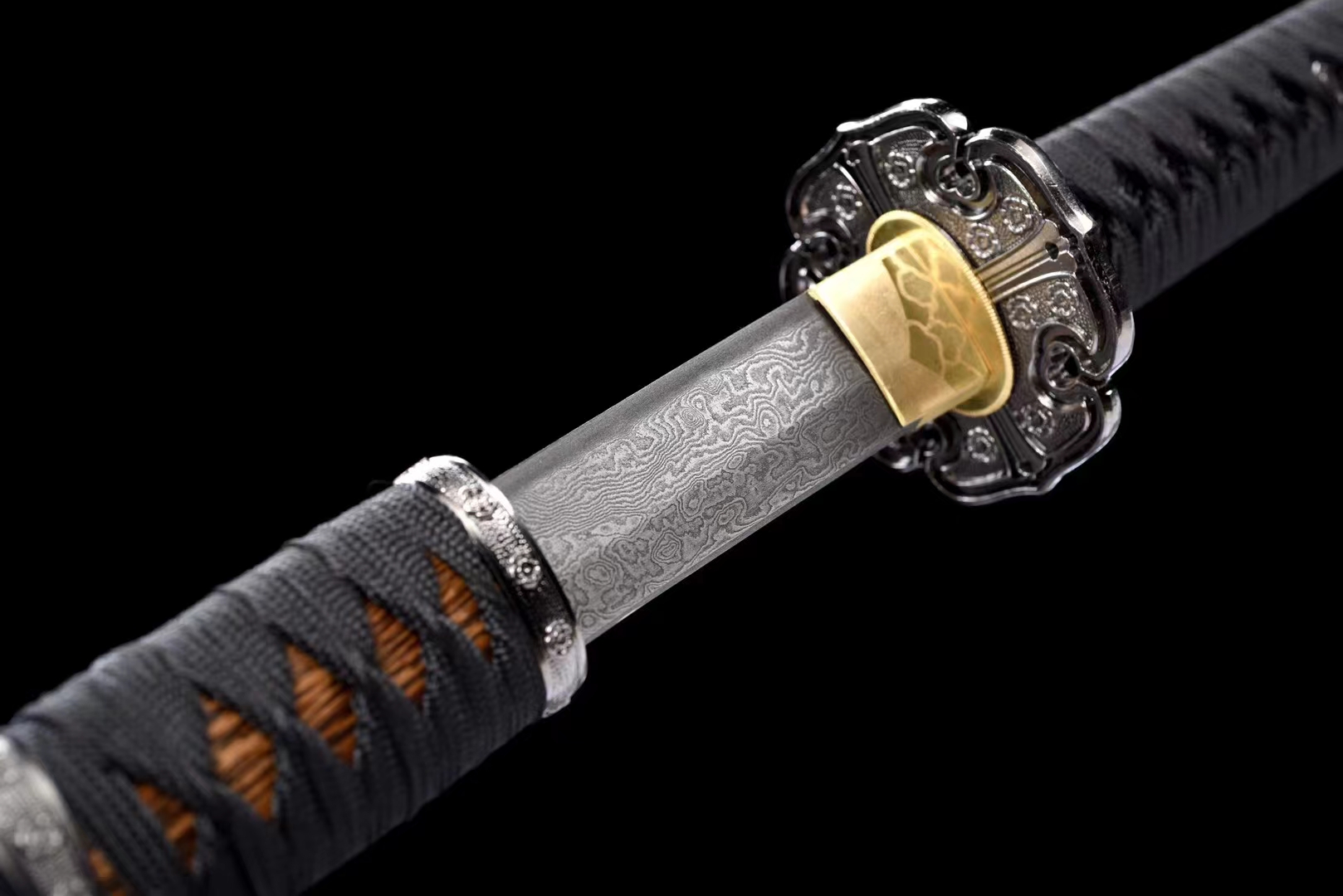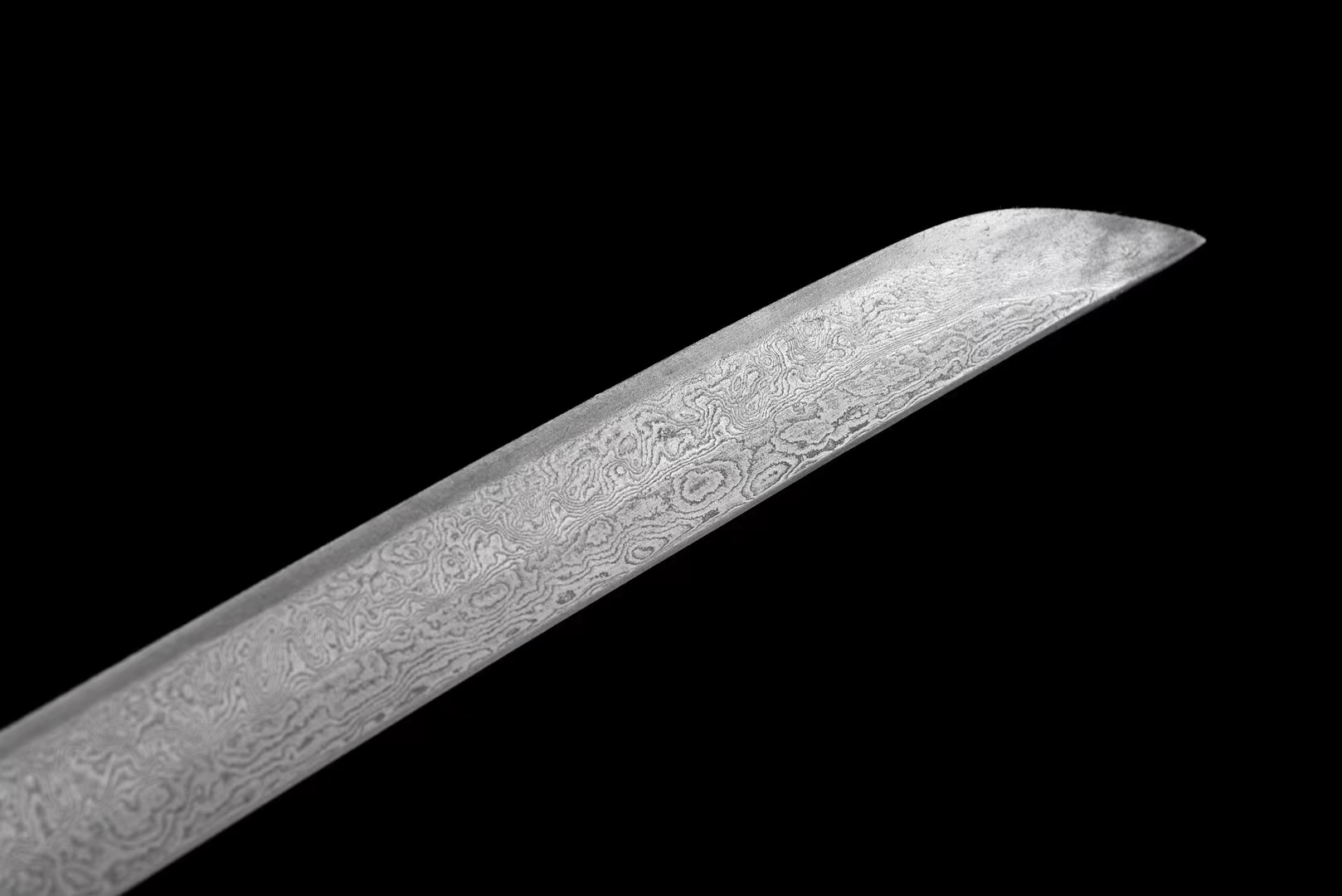Kiếm samurai cao cấp với lưỡi được chế tác từ thép hoa văn luyện nhiều lần (百炼花纹钢), trải qua hàng nghìn lần rèn đập để đạt độ bền tuyệt đối. Bề mặt lưỡi sử dụng kỹ thuật rửa đá tạo hoa văn vòng tròn độc đáo (石洗圈圈纹), giúp tăng tính thẩm mỹ và chống gỉ sét hiệu quả.