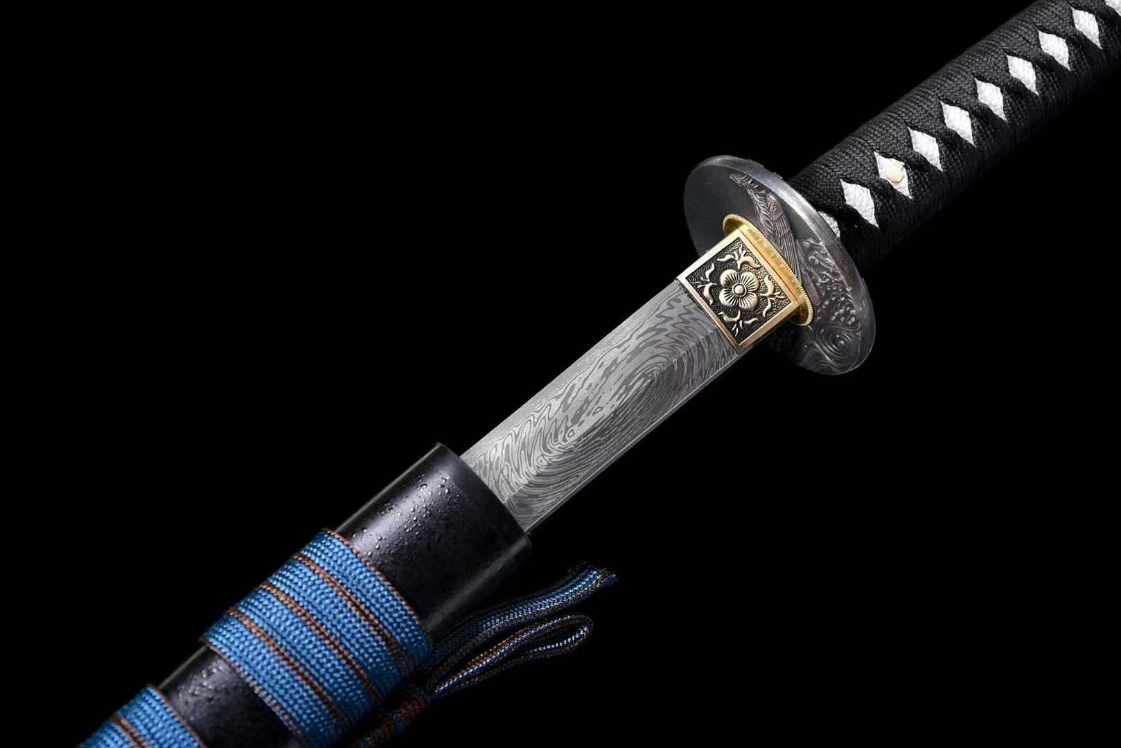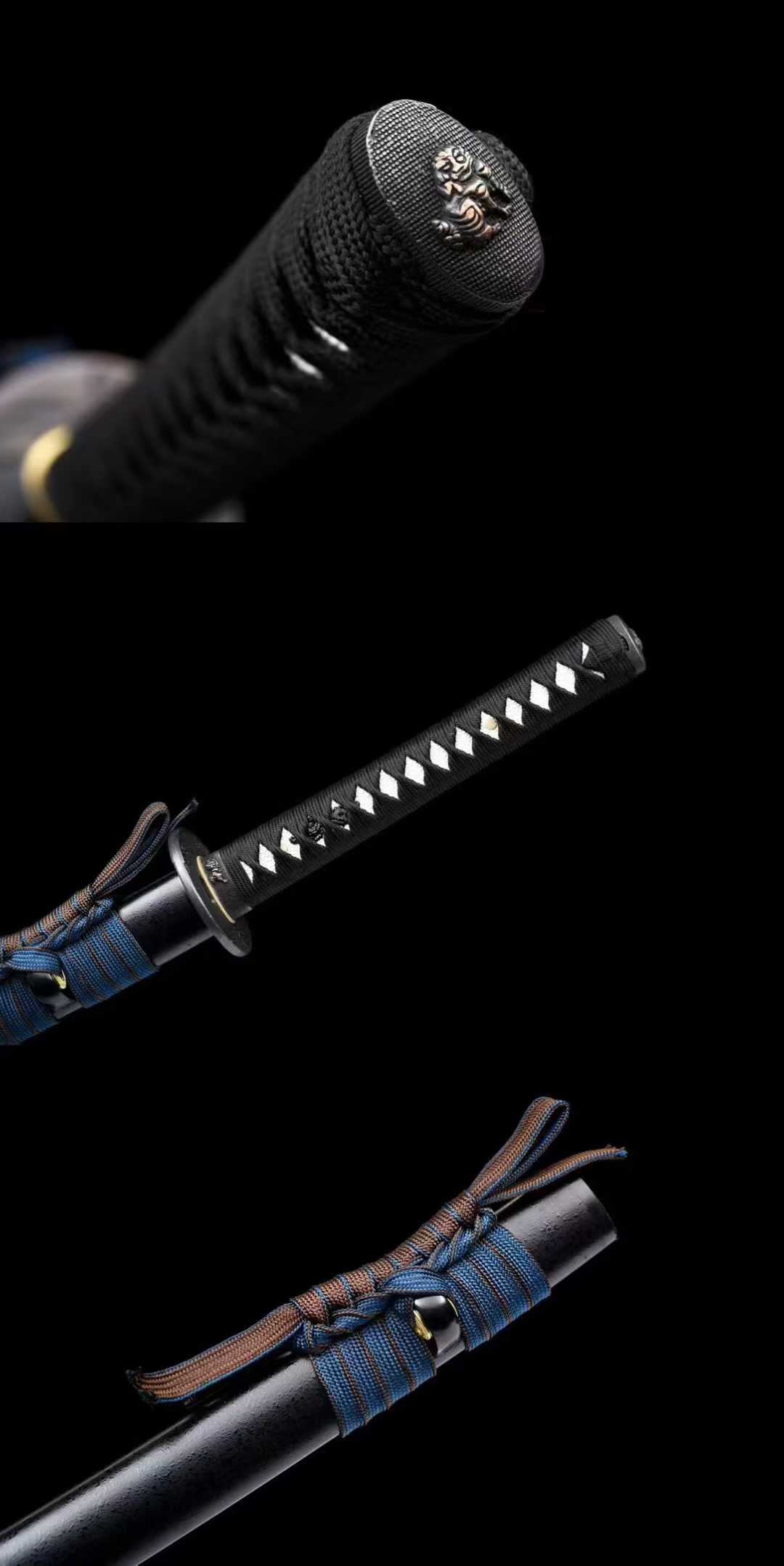 Vỏ kiếm: Gỗ tự nhiên phủ sơn mài cao cấp, kèm dây sageo tinh xảo