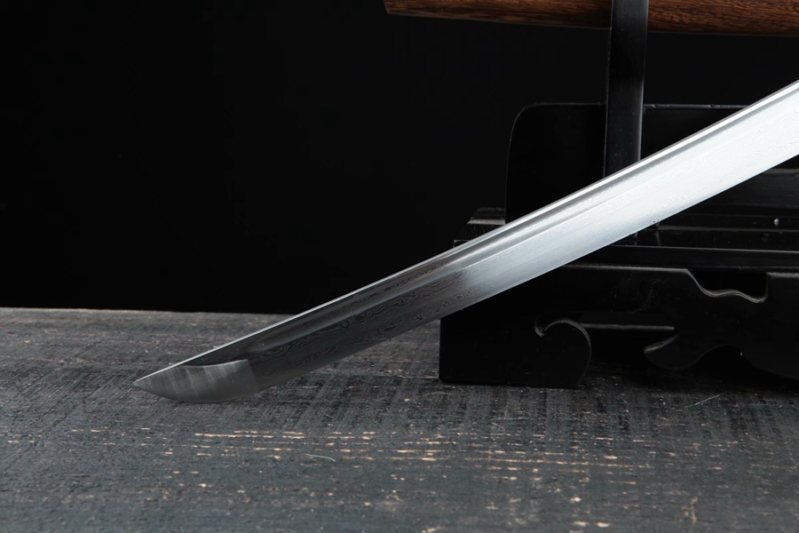 Chất liệu lưỡi: Lưỡi kiếm làm từ thép hoa văn đa lớp (pattern steel) qua quá trình rèn gấp nhiều lần, tạo độ bền và hoa văn độc đáo. Lưỡi được mài tinh xảo, tăng độ sắc bén và độ bền.