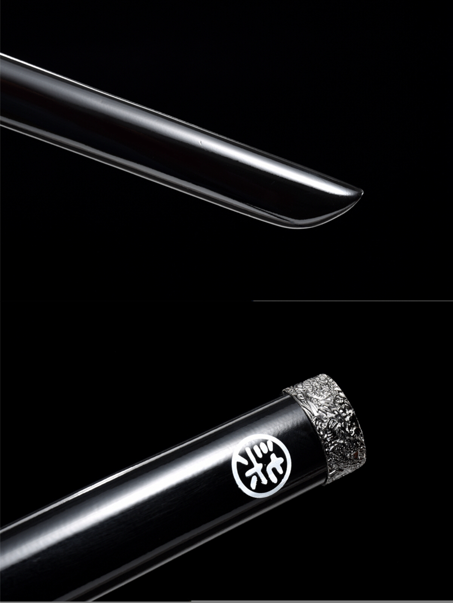 Vỏ đao làm từ gỗ cứng, phủ lớp sơn mài đen bóng cao cấp, chống trầy xước và tăng độ thẩm mỹ.